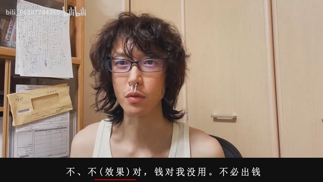 对应字幕:“不、不(效果)对,钱对我没用。不必出钱”