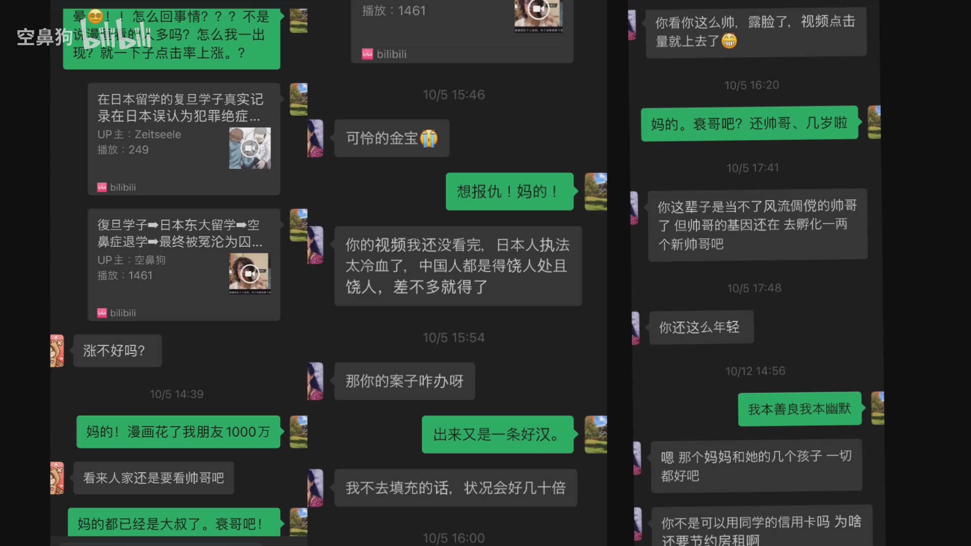 《復旦学子➡︎日本东大留学➡︎空鼻症退学➡︎最终被冤沦为囚犯的悲惨遭遇》(3:08)请求复旦校友务必有钱出钱,但又很快改口说要钱没用,不用出钱。