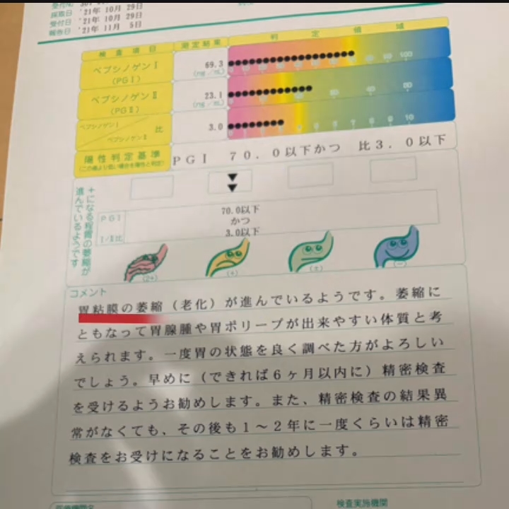 检查结果所见:PGⅠ69.3,PGⅡ 23.1