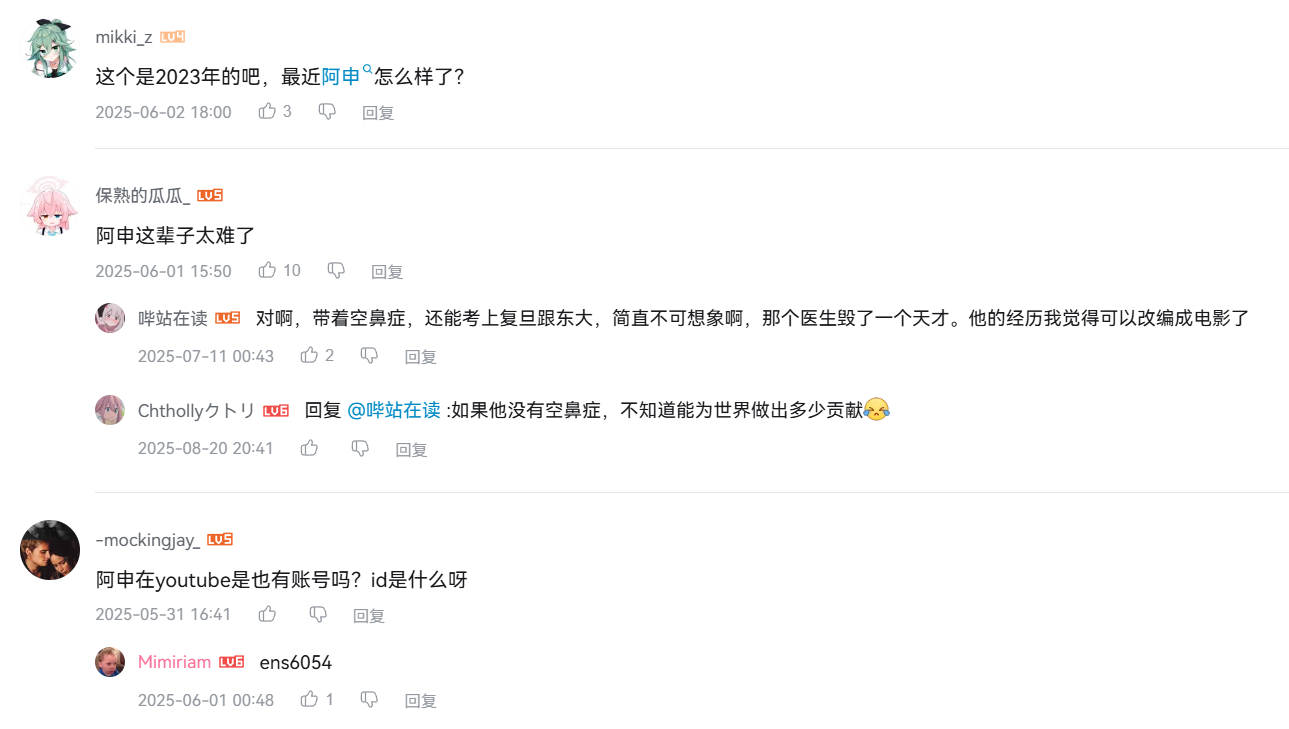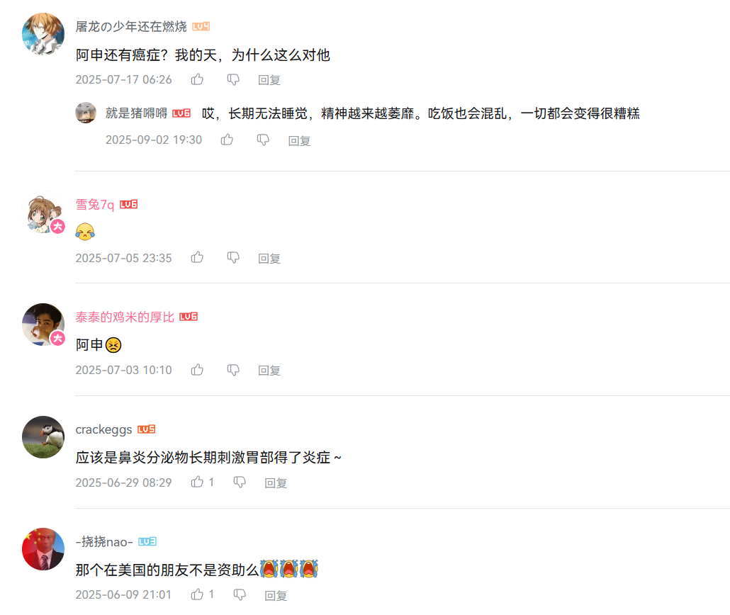 评论区的网友从视频中获取到的也是“阿申已患癌”这个信息。