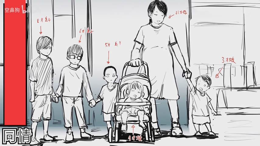 此时原田美惠一家出现,阿申自称基于同情心收留了遭遇家暴走投无路的美惠和她的五个孩子,还把房子让给了他们,后来美惠又生了第六个孩子。