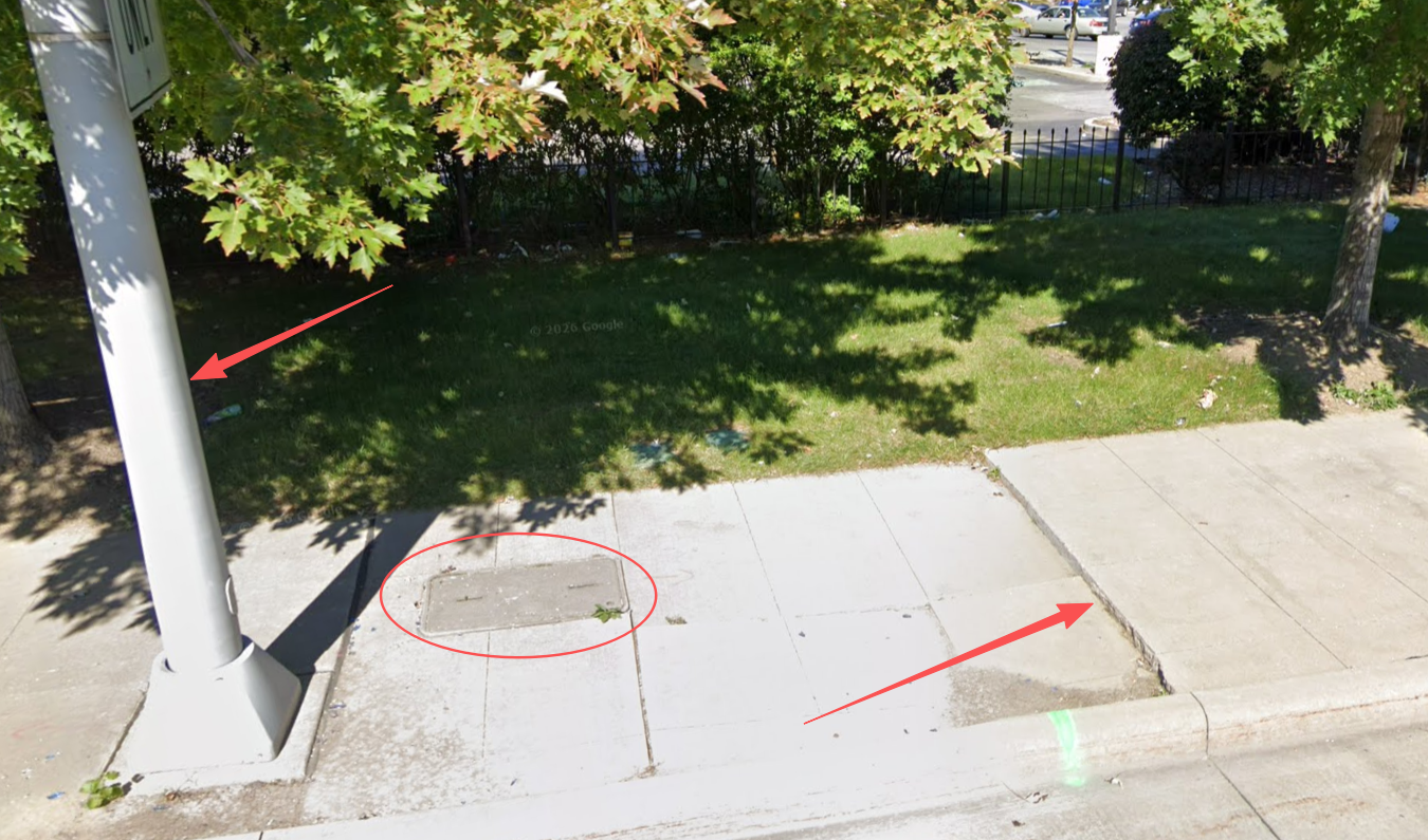 街景(https://maps.app.goo.gl/sq4nzvcUtGsnCtDP9)显示,阿申摔倒的地方6年过去仍然没有维修,人行道不平整的情况仍然存在,目测大约有3-5厘米的一个坎。海外的网友可以通过这个网址直接查看街景,住在克利夫兰的朋友甚至可以去打卡。