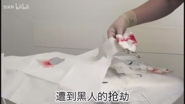 这是第一次手术前两个星期,晚上一个人出去买东西时,遭到黑人的抢劫。因为反抗,下巴被缝了五针。